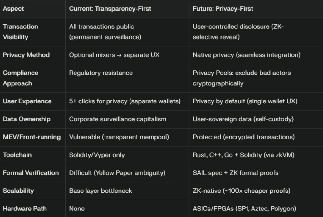 This analysis explores the technical and philosophical arguments in favor of Ethereum’s migration to privacy-by-default infrastructure — a transformation that: